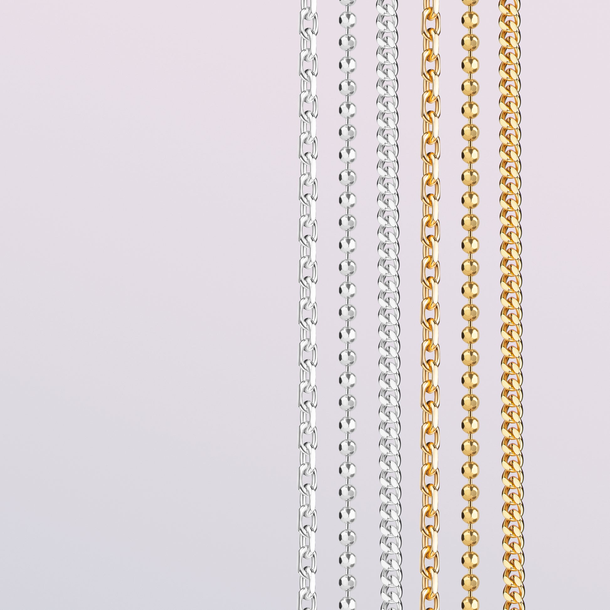 Edelmetall Ketten ohne Anhänger.
